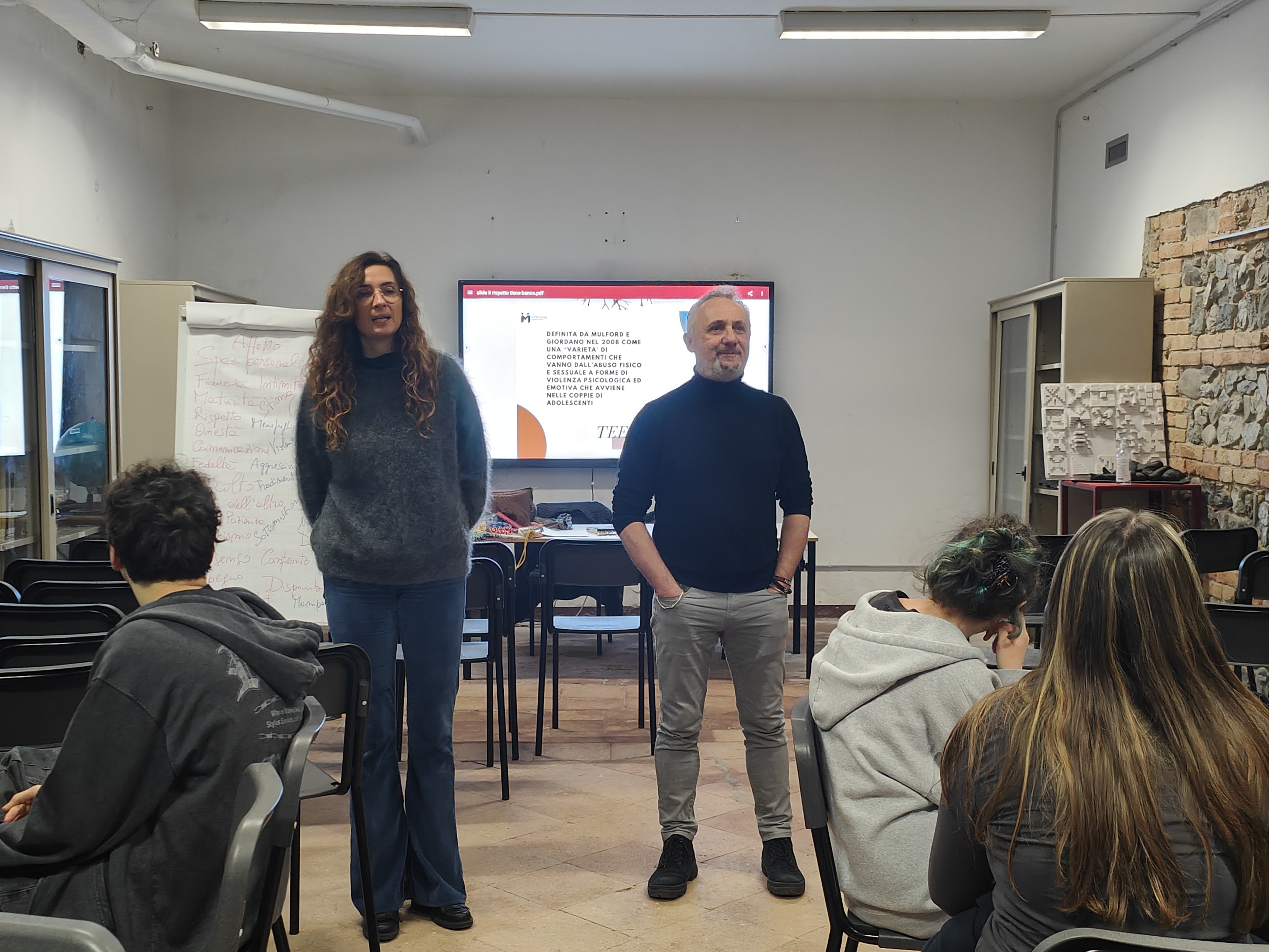 ‹‹Il focus dei nostri confronti ha riguardato la distinzione tra violenza generica e violenza di genere analizzando le diverse fome con cui la violenza si manifesta, dunque fisica sessuale, economica, psicologica, stalking ed ogni esempio è stato calato nel vissuto quotidiano per favorire una comprensione immediata - spiega Maria Lettieri, formatrice del Centro antiviolenza, intervenuta nelle classi insieme alle altre formatrici e psicologhe Marica Corvetti, Simona Tosi, Mariachiara Lombardelli -; abbiamo inoltre affrontato la decostruzione degli stereotipi e dei pregiudizi che costituiscono un terreno fecondo per la violenza di genere, atteggiamenti che i giovani spesso ritengono normali forme di attenzione o gelosia ma che invece sono a rischio››.